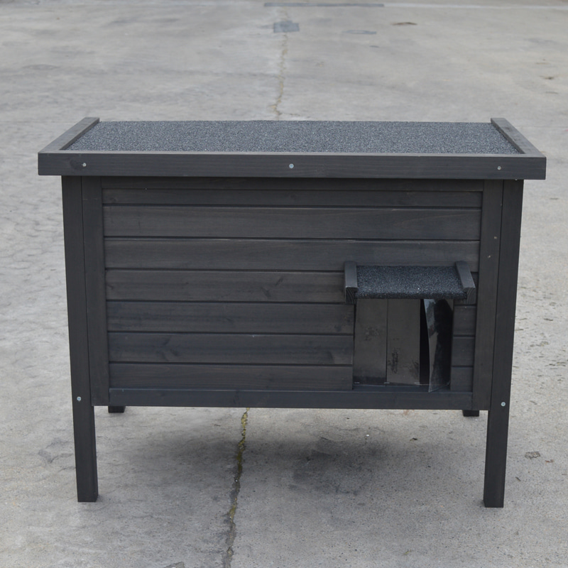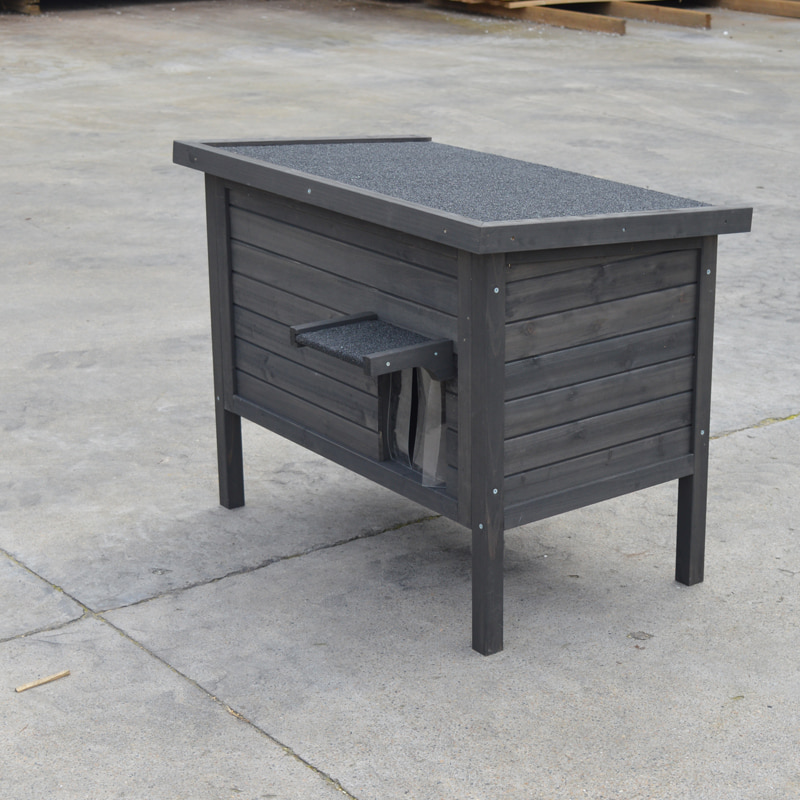 Wooden Cat HouseCasa para gatos robusta y elevada de madera oscura con cubierta resistente a la intemperie