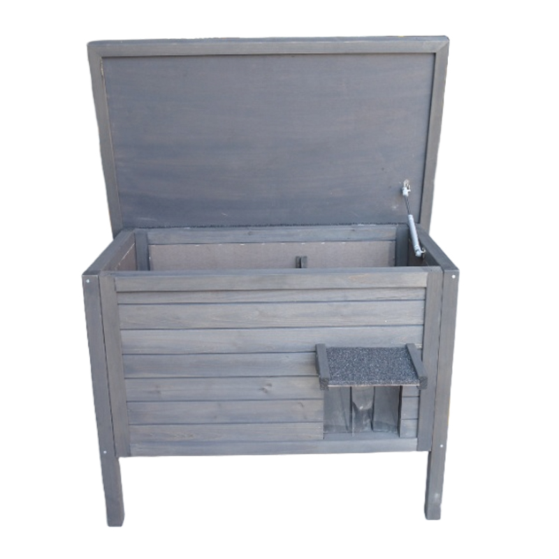 Esta caseta para gatos es ideal para quienes desean ofrecer a sus gatos un refugio privado y cómodo, especialmente para quienes disfrutan del aire libre. Después de que los gatos hayan explorado y deambulado al aire libre, esta caseta les sirve como el lugar perfecto para relajarse y sentirse a gusto. Satisface eficazmente la necesidad de brindarles un espacio propio y exclusivo. Además, su robusta construcción con madera de alta calidad garantiza su durabilidad, lo que la hace ideal para un uso prolongado. Su diseño elevado la mantiene alejada de la humedad del suelo, creando un ambiente seco para los gatos. La entrada, sencilla pero práctica, permite que los gatos entren y salgan sin esfuerzo, mientras que su estructura compacta les proporciona una sensación de seguridad. Los dueños de mascotas no tendrán que preocuparse de que sus gatos se sientan incómodos al aire libre o expuestos a condiciones adversas. Además, su diseño fácil de limpiar, con piezas accesibles, reduce significativamente el mantenimiento diario, lo que facilita que los dueños mantengan la caseta ordenada.